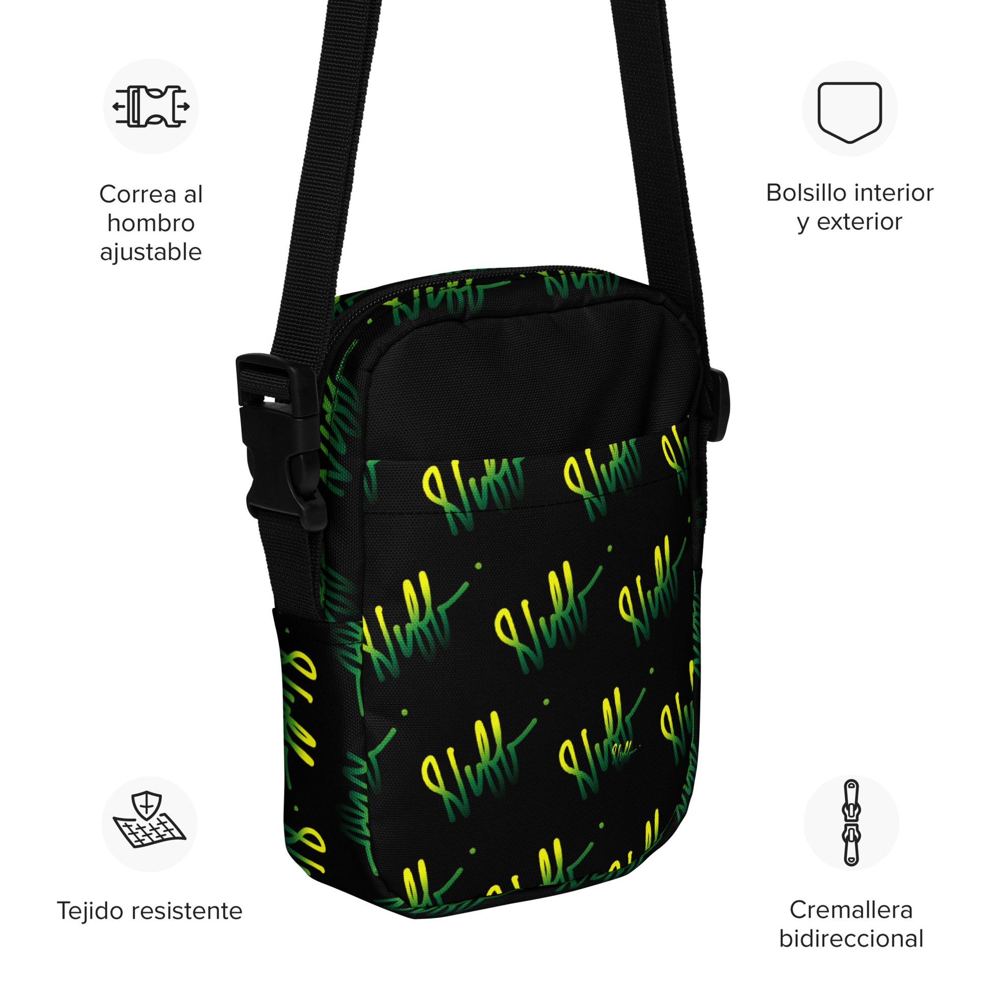 From NUFFmaica by NUFFology, this sleek black bag is adorned with the iconic 'NUFF' signature logo in vibrant Jamaican flag colors—radiant gold, deep black, and lush green. Compact yet spacious, it’s the perfect accessory for errands, festivals, or adventures in any season.